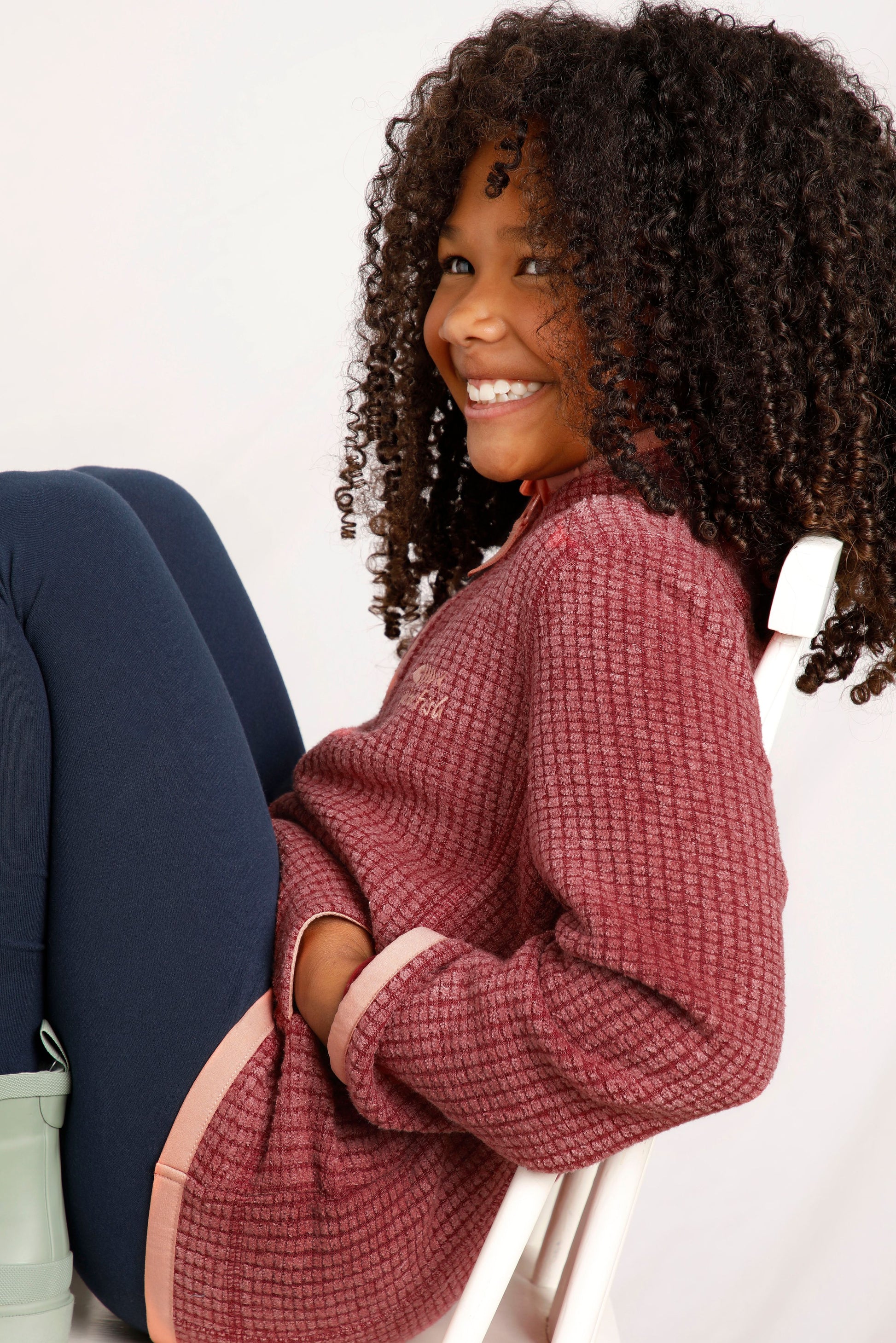 The Archie 1/4 Zip Grid Fleece is our bestselling Newark fleece but for kids! This clever pullover top uses geometric shaping in the weave to hold onto the heat and insulate your child from the cold. The perfect final layer, the Archie 1/4 zip fleece is packed full of extra design details that make it an instant feel-good favorite.