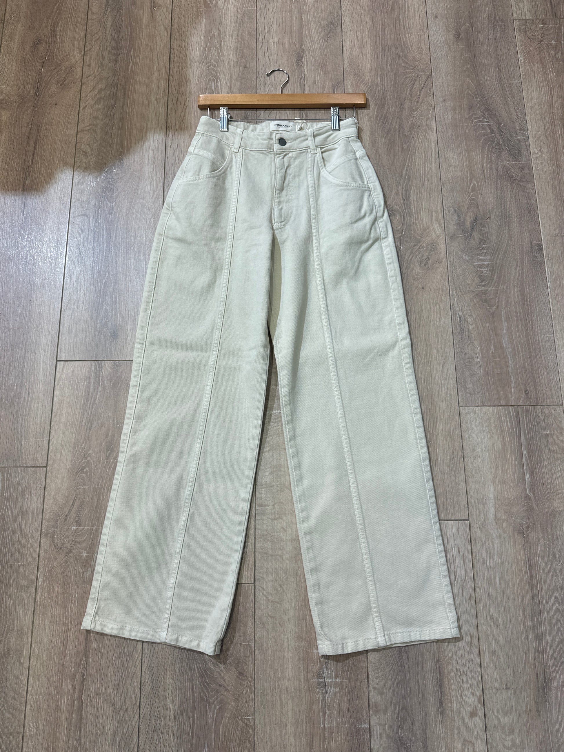 A basic and comfortable pair of pants. They are mid-rise and wide-leg cut, making them broad and very comfortable. They have belt loops and close with a button and zipper. The rustic twill fabric is garment-dyed, choose the color you like best.
