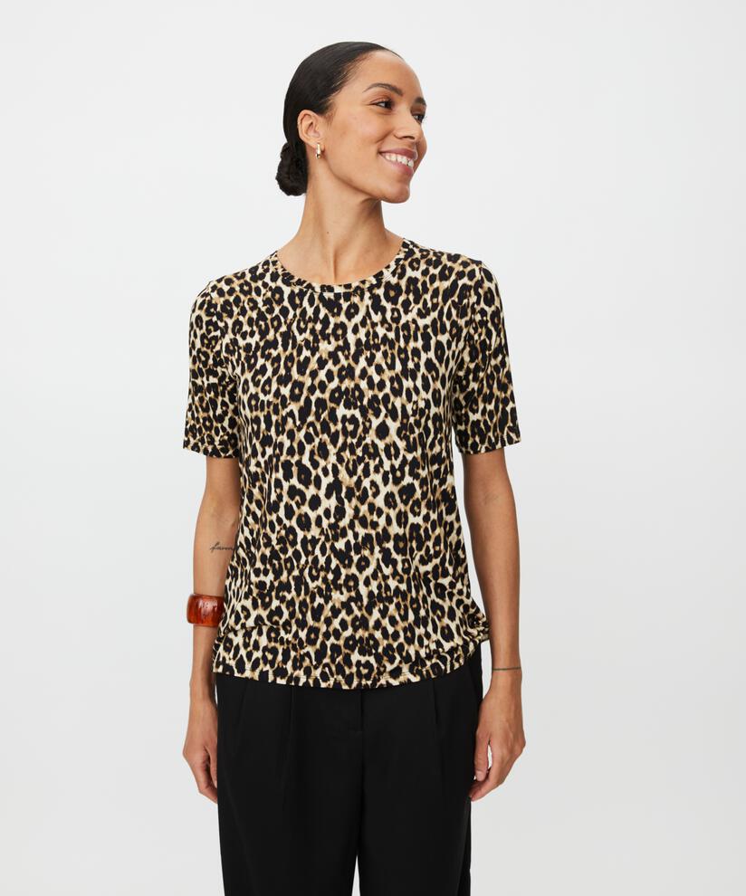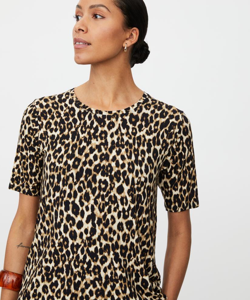 Treat yourself to a t-shirt in exclusive, ultra-soft jersey fabric that is both stylish and comfortable to wear. The timeless leopard print adds character to your wardrobe, while the A-Shape cut provides a light, feminine look. Style it with simple black trousers and gold jewellery for an elegant, stylish look in no time.