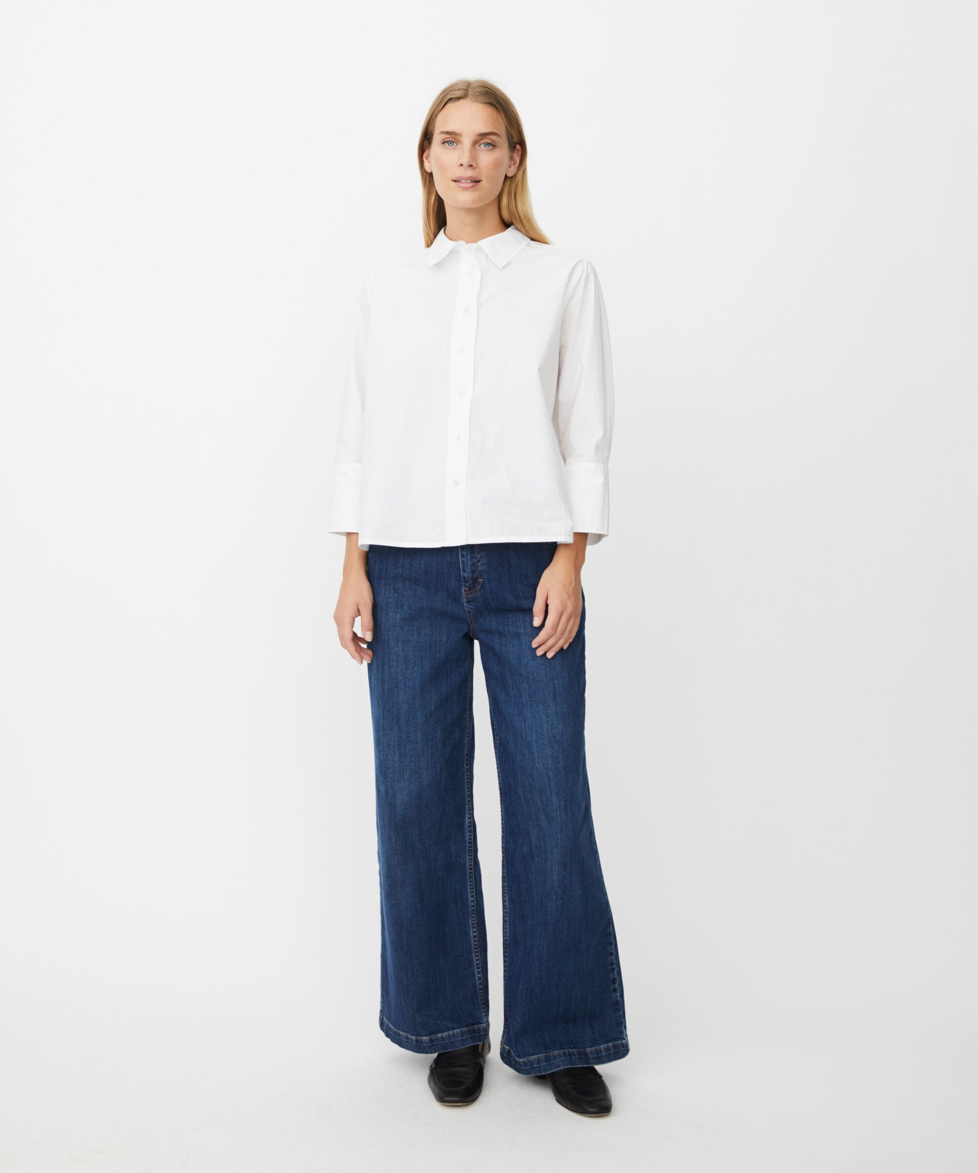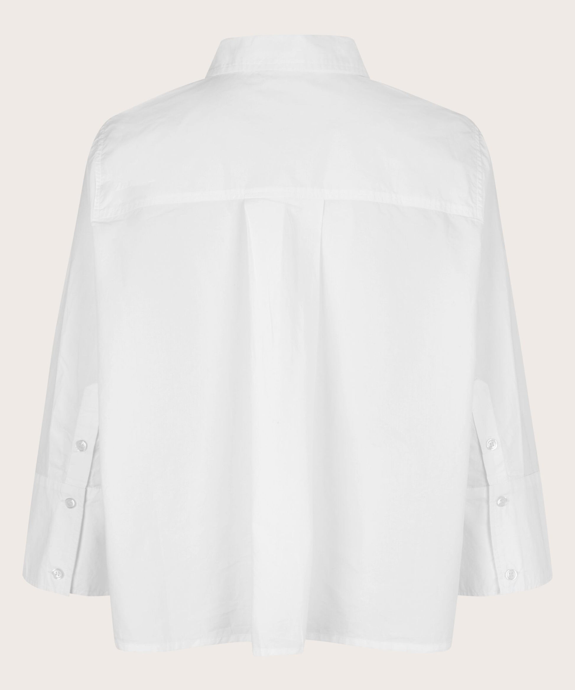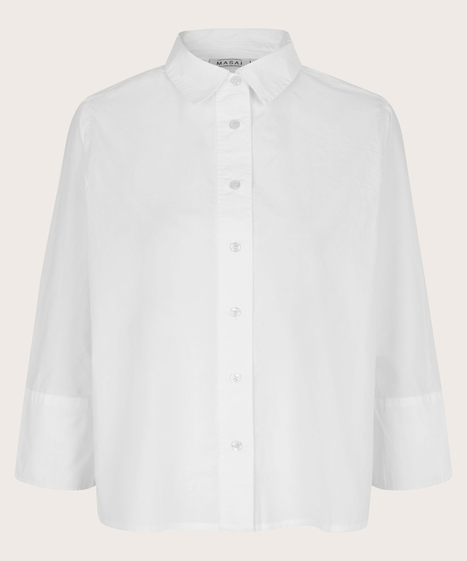A classic shirt is an essential component of any basic wardrobe—simple, timeless, and easy to style in numerous ways. This shirt is crafted from soft, crinkled cotton that's delightful to wear. The design is simple and feminine, featuring three-quarter length sleeves, a classic collar, and light draping on the back for a soft, relaxed fit. Pair it with jeans, an elegant skirt, or layer it under knitwear for a layered look you can wear again and again.