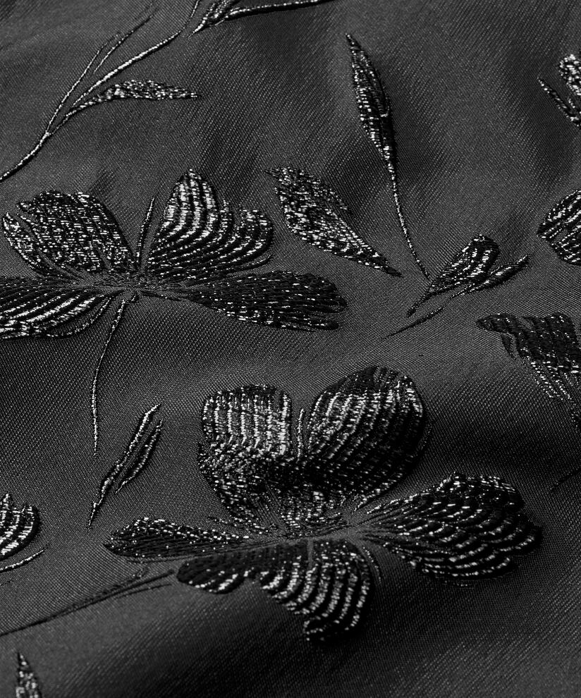 This jacket blends sporty bomber style with elegance. The exclusive jacquard fabric features a subtle floral texture that captures the light, creating a feminine, glamorous appearance. Designed with long sleeves, broad elasticated cuffs and a relaxed fit, the jacket drapes beautifully over the body. Wear it as a chic and cool layer over dresses, trousers or jeans – a stylish alternative to a classic blazer, suitable for both everyday and parties.