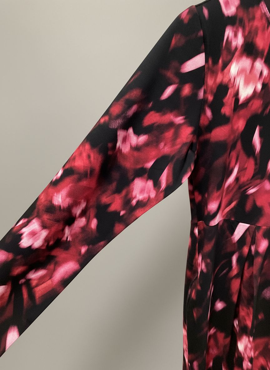 The feminine tulip dress is a timeless Masai classic - here decorated with a beautiful black and white print. The dress is designed with a round neck, long sleeves and a fitted cut with lots of small pleats. The luxurious jersey fabric makes the dress soft and comfortable to wear. Also note the discreet slit pockets on the sides, so you always have somewhere to put your hands. Wear the dress alone or style it with a soft cardigan or a decorative necklace for a personalised look.
