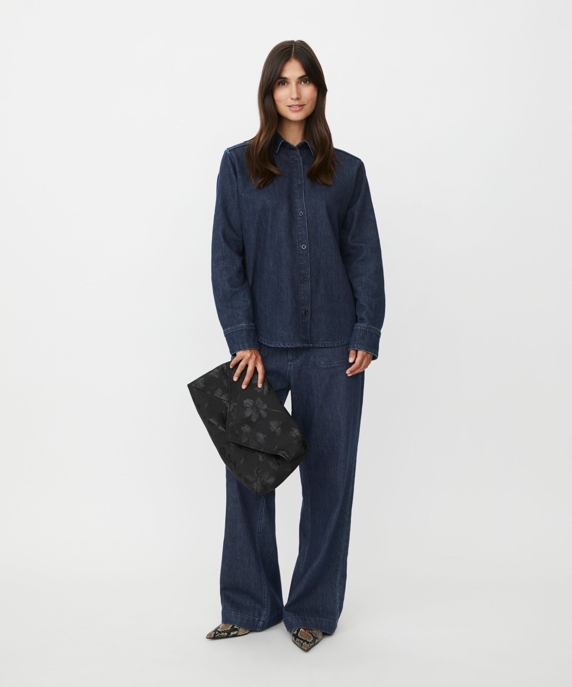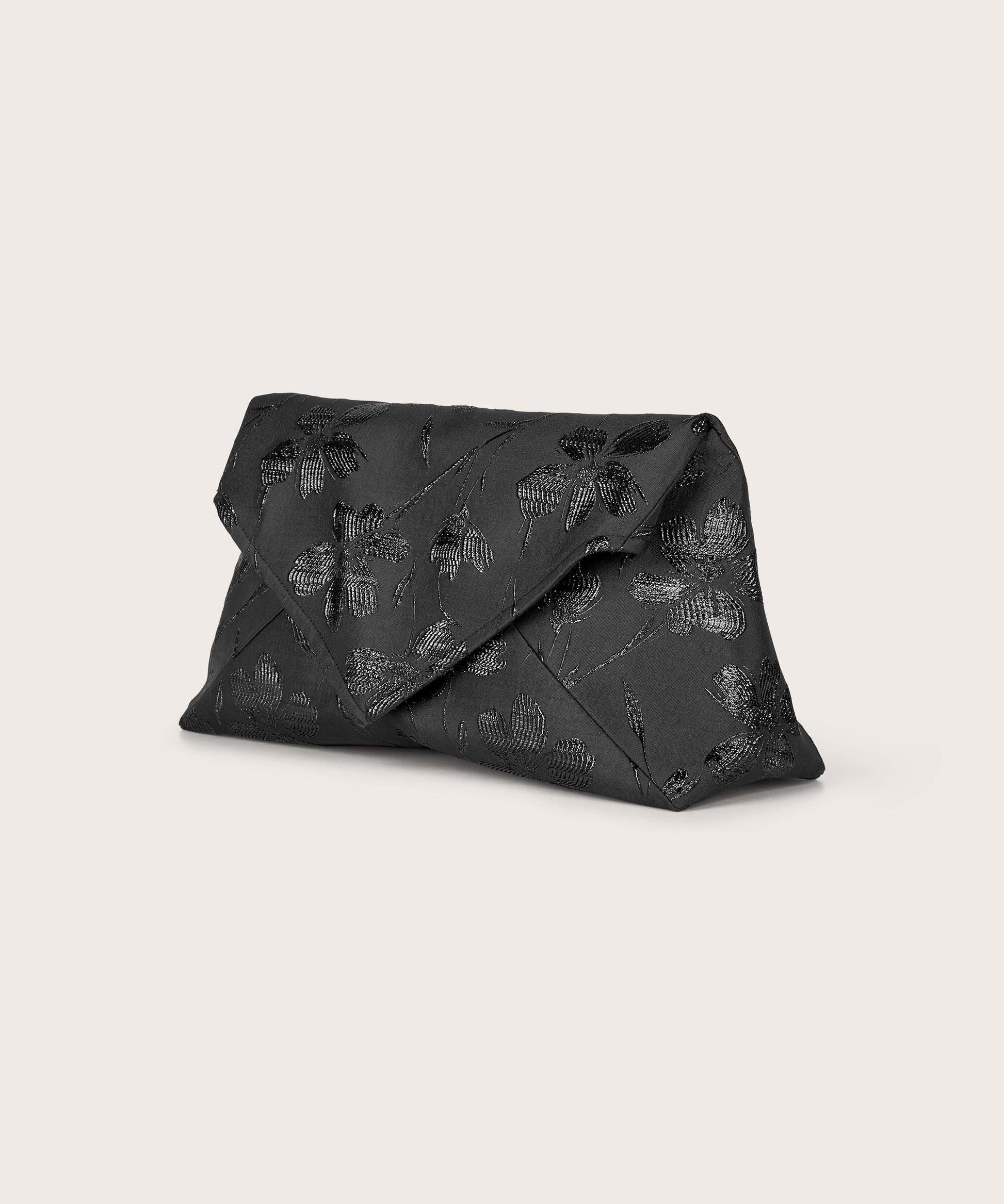 This elegant clutch is the perfect finishing touch to your party look. It is quilted with a soft nylon lining and adorned with a glittering floral print – perfect for all those winter parties. The voluminous envelope bag has one large compartment with plenty of space – you can even slip in a pair of ballet flats if you plan to dance the night away. Perfect for completing this look – whether you style it with a dress, suit, or jeans and a silk top.
