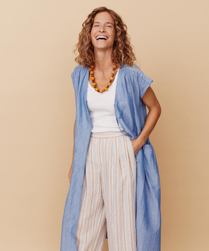 Complete your bohemian look with this stylish necklace, as elegant as it is cool. The mix of marbled beads in varying colours and sizes creates a stunning effect. The chain fastens with a small gold-plated hook at the nape. You can wear the necklace alone or with our matching earrings for a complete look.