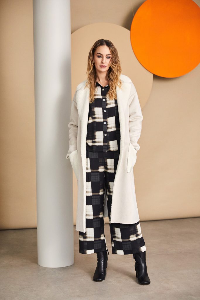 NAYA have made the most of a softly infused block print by incorporating it in to a square shaped shirt. Complete with a classic shirt collar, cuffs, and mother of pearl buttons, this shirt shouts luxury