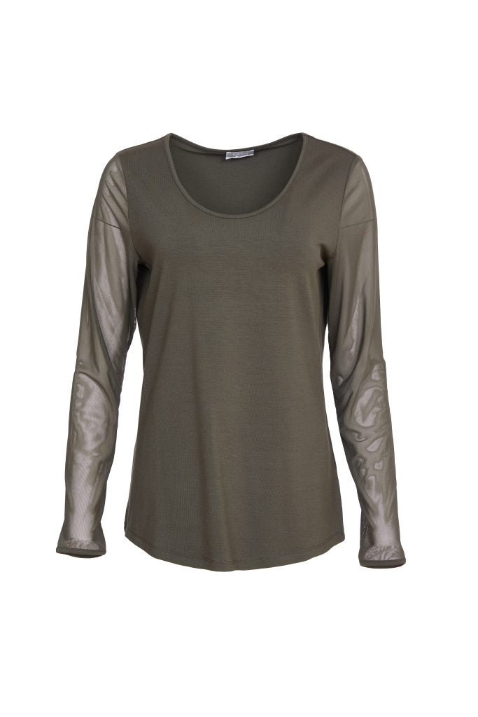 If you like a lightweight full sleeve top for autumn look to the NAYA top with a sheer mesh sleeve. Both bodice and sleeve are in a rich matching shade and available in three solid colours to wear all winter long.