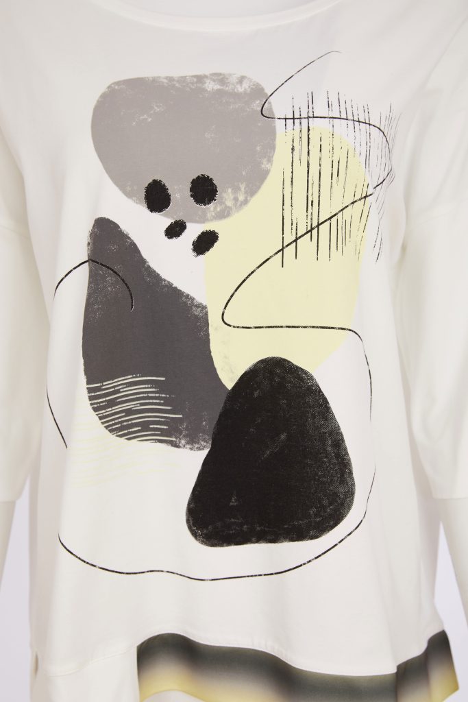 The NAYA jersey round neck top with bracelet length sleeves is adorned with a delicate abstract print to the front bodice. This top will be a mix and match option for you throughout the season. The print is a must for those that don’t like florals.