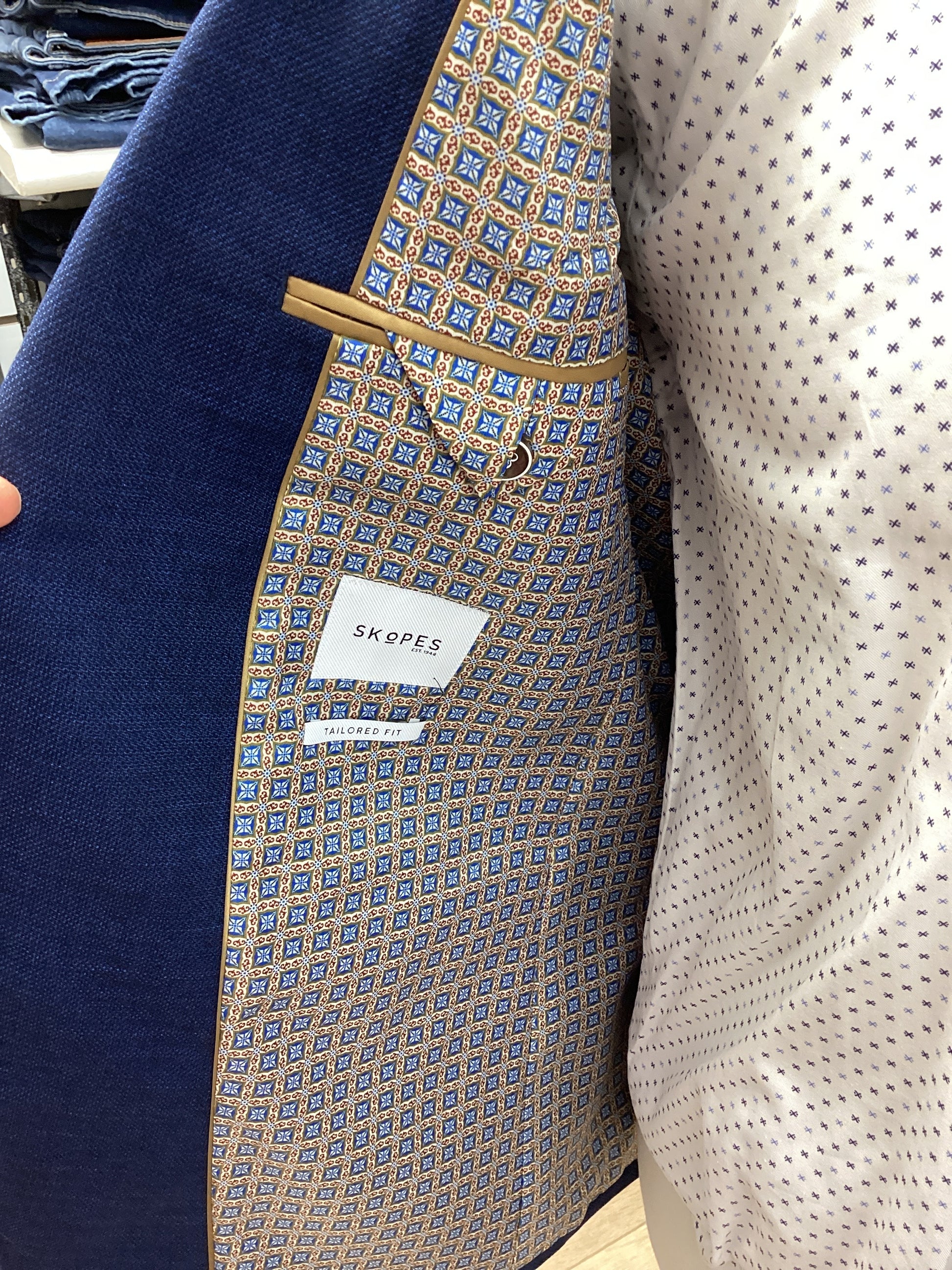 I’m Jamie, a single-breasted jacket in a silhouette-defining tailored fit. I’m cut from a semi-plain cloth in a navy – and I come in alternative colours too. Whether it’s a day at the races or an evening down the pub, I’ll put you on the fast-track to looking like a champion.