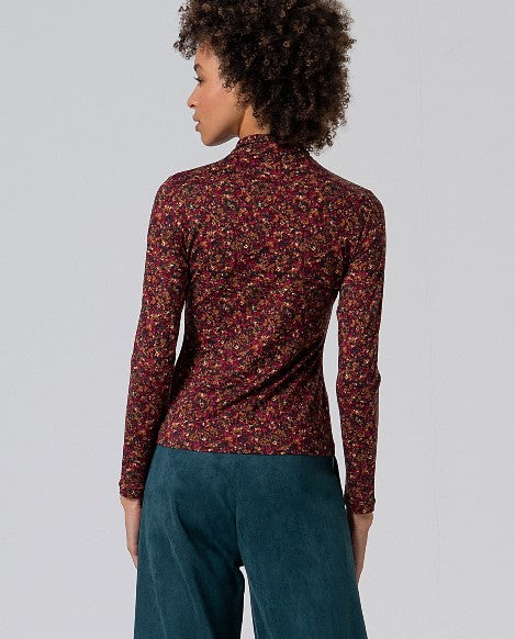 Long sleeve T-shirt with high neck, made of recycled polyester elastic fabric. Its original print and close-fitting pattern make it the ideal choice to give a special touch to your most casual looks. Combine it with plain garments to balance the outfit.