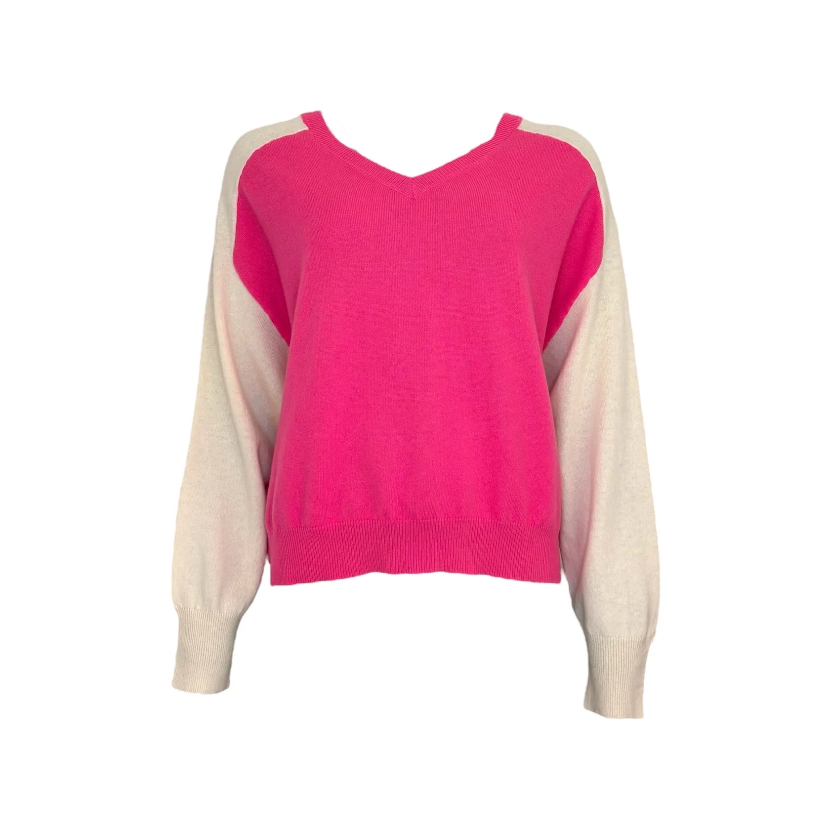 TWNS Wheatridge Bi Color V Neck Pullover Neon Pink