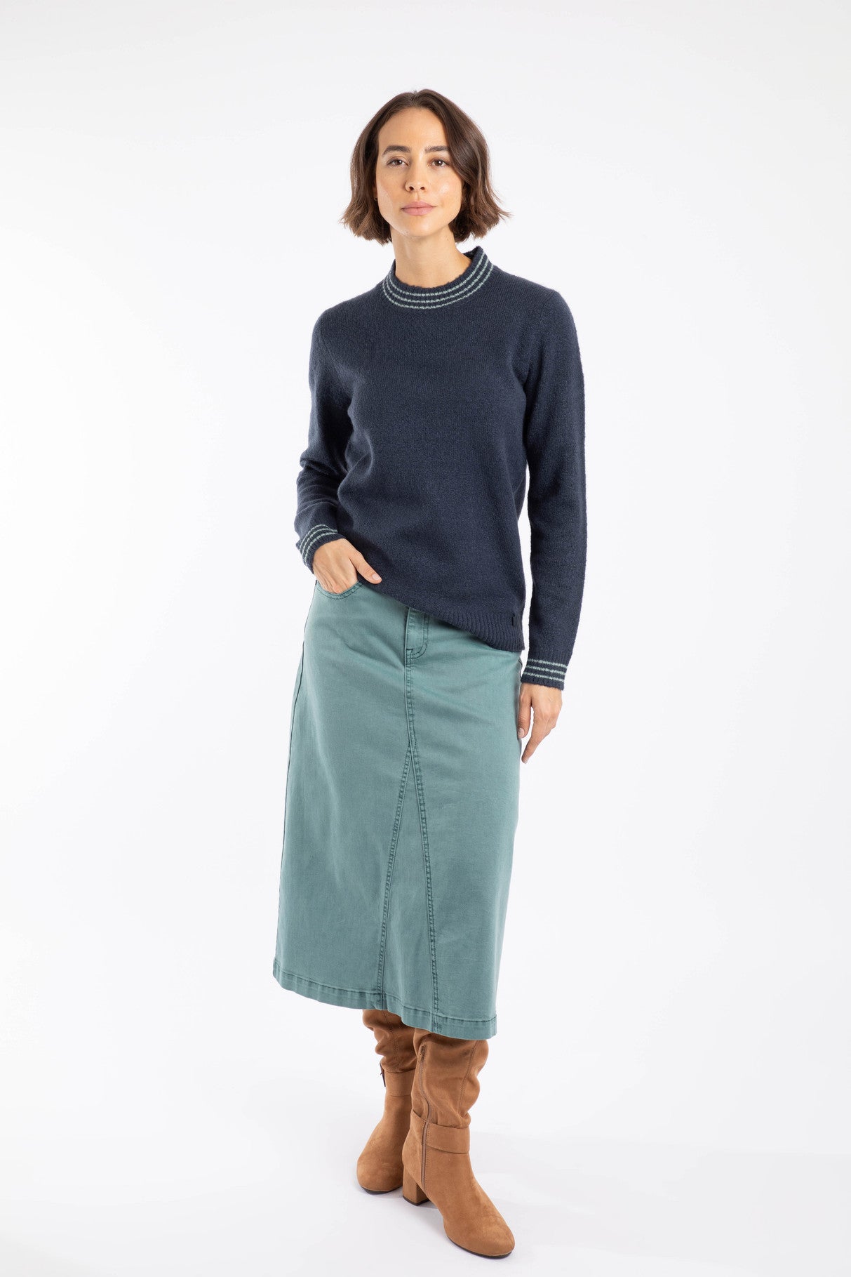 We love to wear knits in place of tees during cooler months, the Dawkins Tipped Jumper comes in a range of great colour blocked hues for the season, making them easy to team with dresses and trousers, or just pop them over your favourite T-Shirt and jeans. We have tipped each one's neck and cuffs with a contrast stripe for a bit of fun.