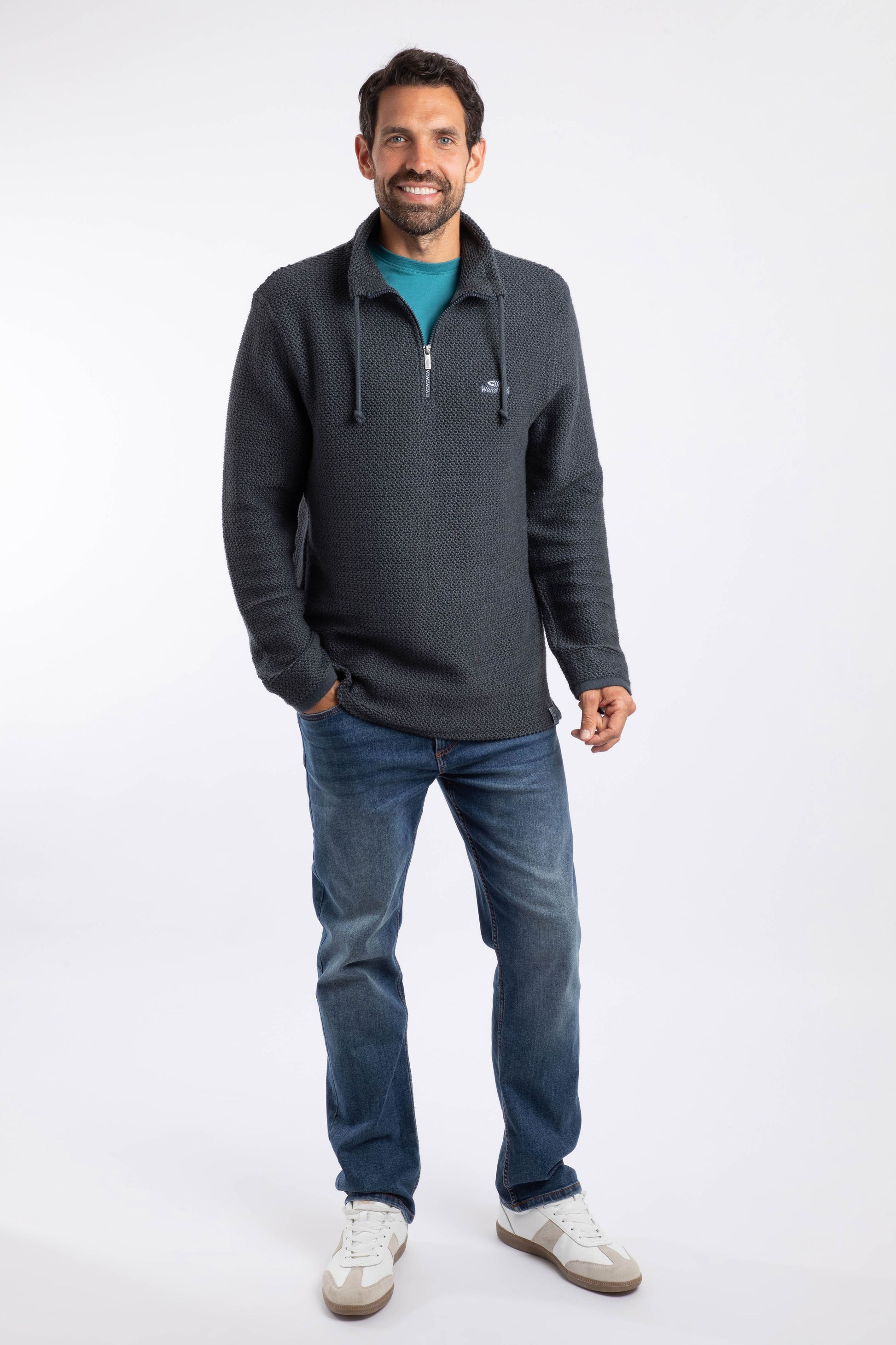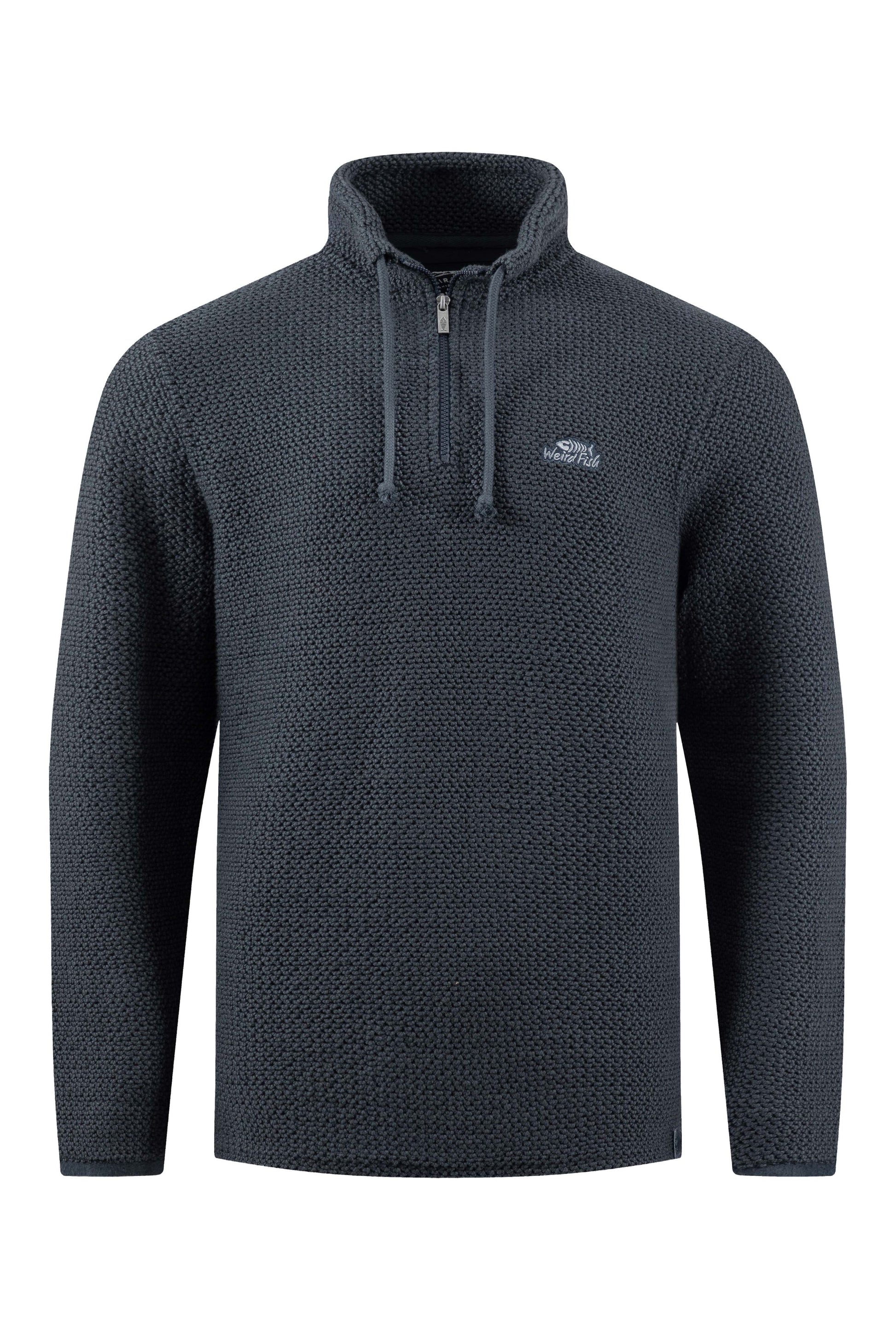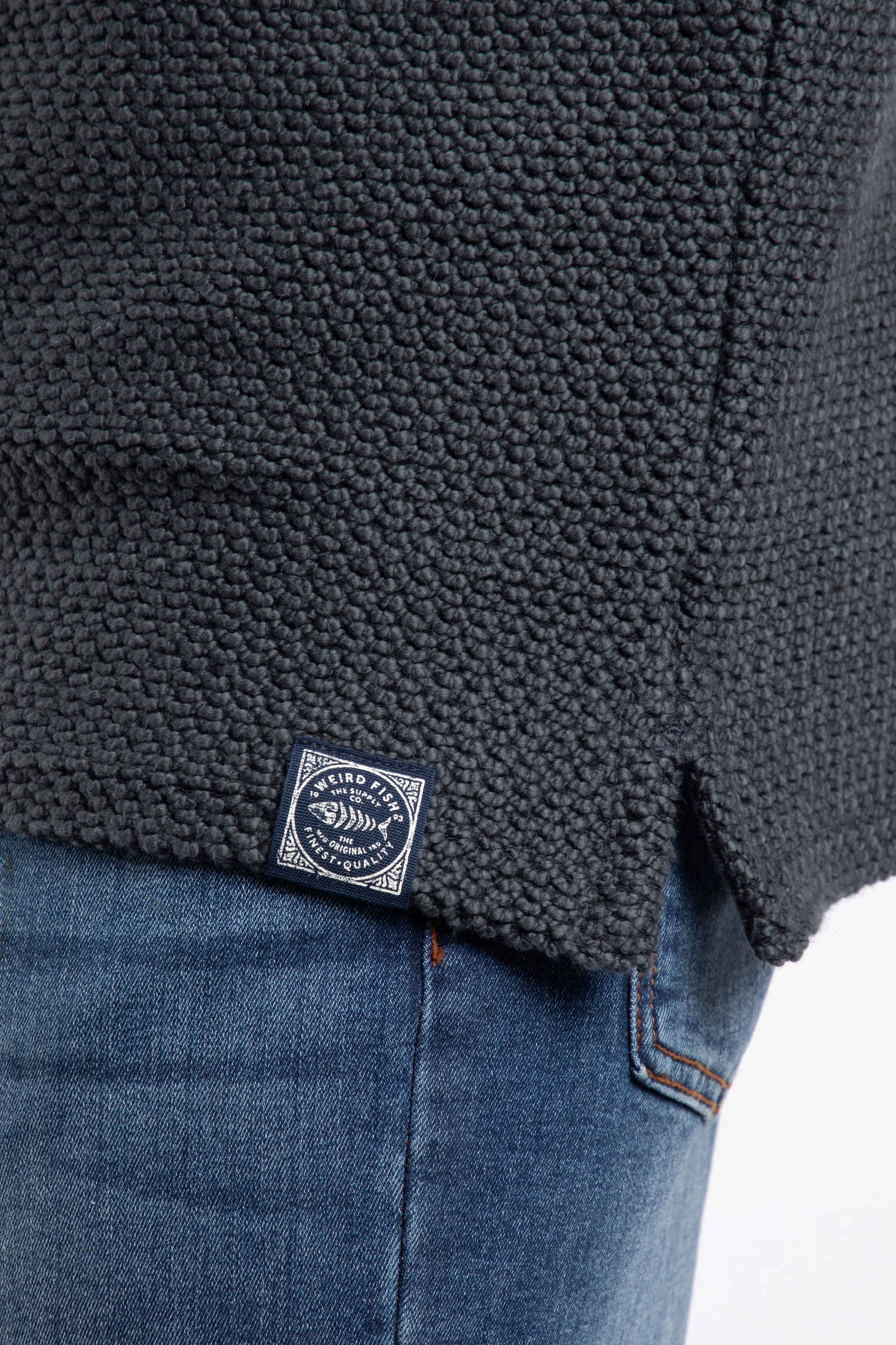 The most iconic Weird Fish item; The Cruiser 1/4 zip Macaroni is where it all began, back in 1993 we discovered these circular knitting machines that were no longer in use, and we brought them back to life. We named the fabric for the semicircle texture it embodies, and the Macaroni fabric was born.